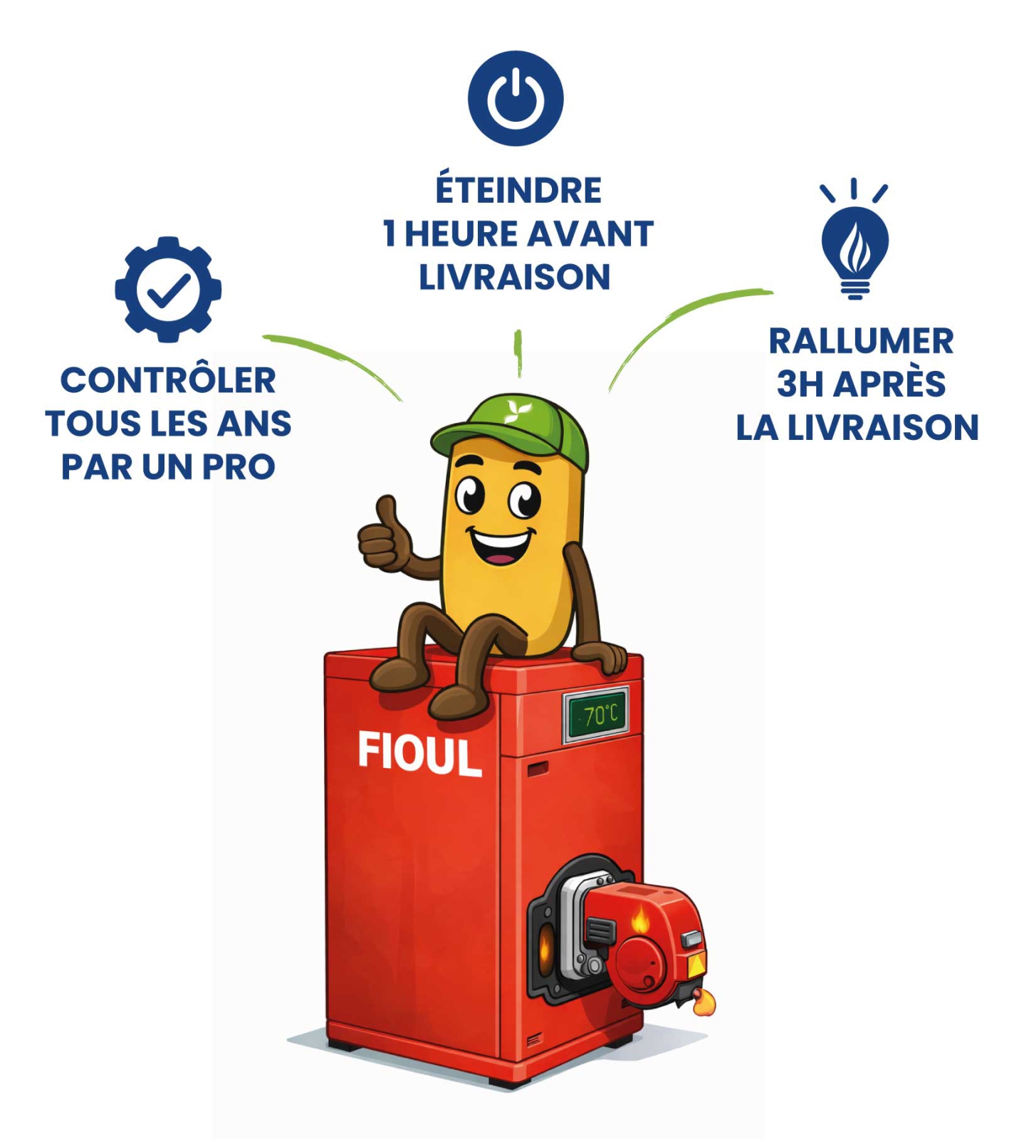 - Éteindre votre chaudière 1h avant la livraison.